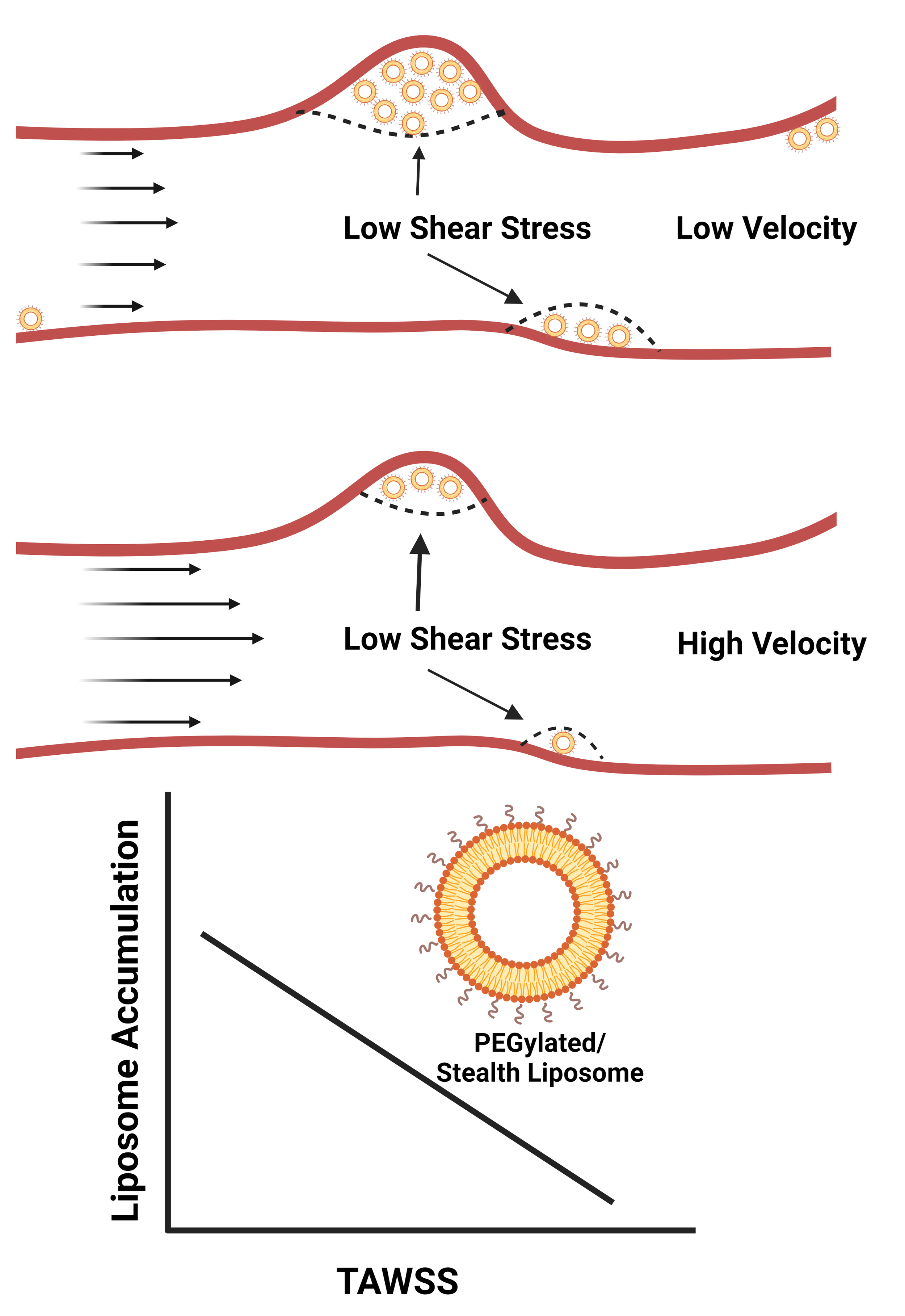 Blood vessel wall shear stress determines regions of liposome accumulation in angiogenic vasculature